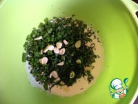 В миске смешать кефир, зелень и чеснок. Посолить и поперчить. Перемешать. |