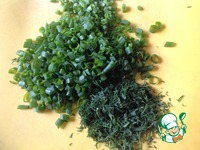 Пока бедрышки обжариваются, нашинковать зелень. Чеснок очистить и нарезать тонкими пластинками. |