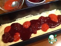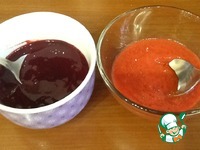 В предварительно смазанную форму выложим половину теста и на него в шахматном порядке ягодное пюре. Ой! Сейчас про пюре расскажу поподробнее... |