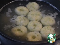Готовые клецки выбрать шумовкой. Перемазать сливочным маслом или добавить подливу (если такая есть в наличии). Стараться, чтобы масло в углубление попало! Подавать горячими. |