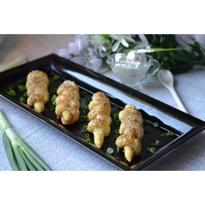 Выкладываем на подготовленный противень. Смазать взбитым желтком. Сверху посыпать кунжутом. |
