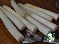 Отварить спаржу в кипящей, подсоленной воде 5 минут. Воду слить и немедленно сполоснуть спаржу холодной водой. |
