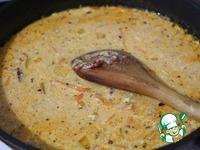 Добавить томатную пасту, сахар, соль, перец, паприку, куркуму и влить кефир. Довести до кипения и готовить 3 минуты. |