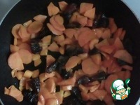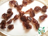Следующий ингредиент - порезанные финики. Их также обжариваем 2 минуты. |