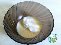 К желтку добавить сахар, муку и молоко. Взбить до однородной массы. |