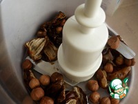 Пробить в чаще комбайна очищенные и нарезанные кусочками финики и слегка обжаренный фундук. Я не очищаю фундук от внутренней кожицы, так ароматнее выходит. |