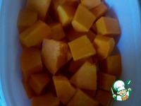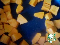 Пока вода для варки крупы закипает, готовим остальные ингредиенты. Тыкву режем небольшими кубиками. |
