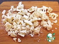 Цветную капусту нарезаем не очень крупно. Высыпаем в кастрюлю с кипящей подсоленной водой. Варим шесть с половиной минут с момента закипания. |