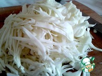 Пока вода для риса закипает, подготовим капусту. Нарезаем капусту любой удобной формой. |