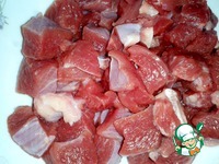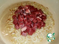 Пока жарится лук, нарезаем филе индейки. Незабываем периодично помешивать капусту. |