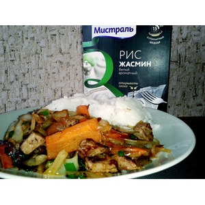 Вода уже закипела - ставим варится два пакетика риса "Жасмин" от Мистраль. |