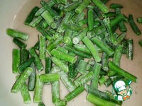 Наливаем подсолнечное масло на разогретую сковородку. Выкладываем спаржу, тушим 5 минут, постоянно перемешиваем. Я использовала замороженную спаржу. |