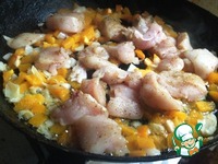 Филе добавить к овощам и готовить до готовности филе. Посыпать куркумой. |