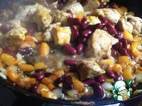 С фасоли слить жидкость и добавить в сотейник. Перемешать. Прогреть. |