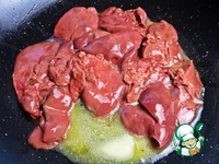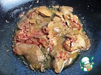 Переходим к печёнке. Убираем жиринки. Нагреваем сковороду вок со сливочным маслом и выкладываем в него печёнку. |