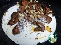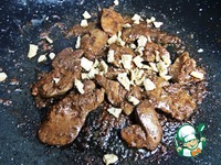 Измельчить цукаты и высыпать к печёнке. Как оказалось, они тут были кстати. |