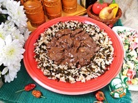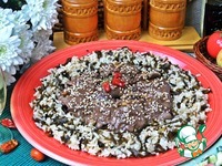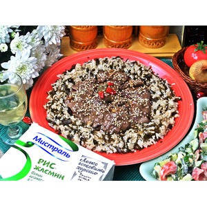 Описание: Печёнка в сливках знакома и мила многим, я лишь добавила "изюминку"-засахаренный имбирь, было приятно ощущать его с печёночкой. Рис сегодня для любителей морской капусты. Если в семье есть нелюбители таковой, подайте с простым рисом.