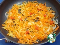 Добавить морковь, перец чили и жарить еще две минуты. |