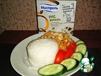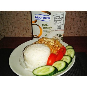 Достаем пакетики риса, даем воде стечь. Выкладываем рис и капусту с фаршем на тарелку. Украшаем блюдо овощами, я использовала огурец и помидор. |