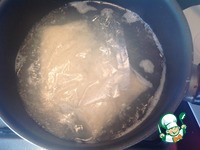 В кастрюлю с кипящим куриным бульоном или водой добавить рис в пакетиках, чуть посолить и варить 30 минут. У меня рис в пакетах ТМ Мистраль "Янтарь". |