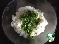 Хорошо перемешать рис вилкой, чтобы зелень равномерно распределилась. При необходимости посолить и поперчить по вкусу. |
