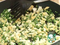 1. Для начинки мелко шинкуем лук и немного притушиваем его на сливочном масле. |