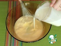 4. В хорошо взбитую массу просеиваем муку с разрыхлителем и замешиваем густое тесто. |
