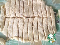 Тесто оставить отдыхать на 30 минут. По истечению времени раскатать тесто в пласт толщиной 1 сантиметр. Нарезать пласт на палочки. Палочкам придать округлую форму. |
