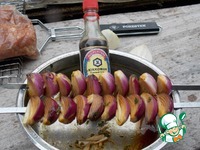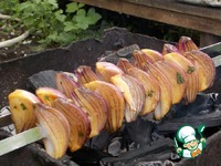 Запекаем на не жарких углях примерно 10 мин. переворачивая постоянно. Как только увидите, что лук начал раскрываться, проливаем его (сняв с мангала ) оставшимся соусом, чтобы он попал во внутрь. |