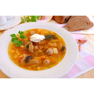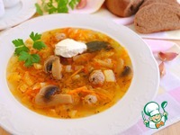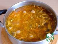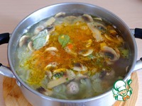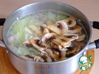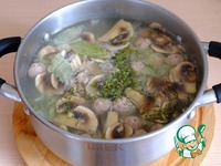 Дать прокипеть дополнительно 2-3 мин., кастрюлю снять с огня. Щи с фрикадельками и шампиньонами готовы |