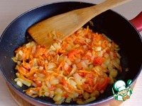 Добавить в сковороду растительное масло (5 ст. ложек). Пассеровать овощи до легкой золотистой корочки |