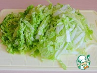 Добавить на сковороду растительное масло (3 ст. ложки), добавить пекинскую капусту, добавить по вкусу соль. Обжарить капусту на среднем огне до легкой золотистой корочки |