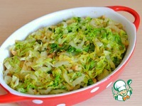 На дно формы для запекания выложить слой обжаренной пекинской капусты |