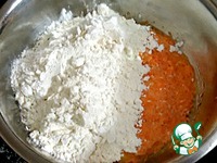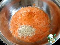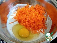 Добавить яйцо и морковь, тертую на мелкой терке. |