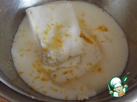 В творог добавить половину сахара, сок и цедру половины лимона, размешать. |