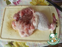 Посыпала солью чесночной и перцем. И пока жарились грибочки с лучком, курочка немножко пропиталась специями (можно минут 20-30 помариновать). |
