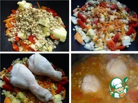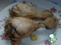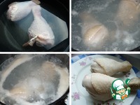 Куриные голени залить холодной водой, закипятить и проварить 2мин., воду слить, мясо промыть холодной водой. |