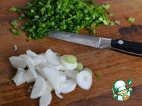 Зеленый лук нарезать. Зеленую и белую часть отдельно. |