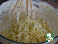 Сыр мягких сортов нарезать или натереть на крупной терке. Я мелко нарезала. Добавить к начинке. Перемешать. |