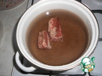Говядину вымыть, выложить в кастрюлю, залить холодной водой, довести до кипения и варить примерно 25-30 минут. |