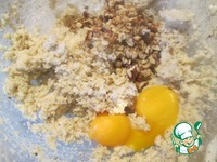 Отделите желтки от белков и добавьте их я в сливочно- ореховую массу. Размешайте. |