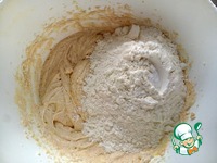 Добавить муку, смешанную с разрыхлителем, перемешать. |