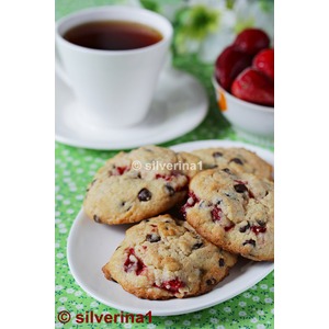 Описание: Один из немногих рецептов печенья, которые мне очень нравятся. Мягкое, нежное, вкусное, с кусочками клубники и шоколадом - оно чудесное! Пеките, не откладывая, оно того стоит! Если у вас нет клубники, можете просто исключить её, всё равно будет замечательно!