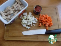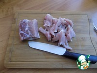 Я взяла 300 г свиного карбонада. Порезала его кусочками-брусочками. |