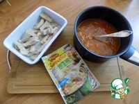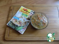 Я взяла заправку от Maggi для рассольника. В нём есть всё: и огурцы, и чеснок, и приправы, соль. Добавила заправку в сотейник, перемешала, положила 1 ч л сахара и лавровый лист. Потушила 3-5 минут. |