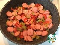 Добавляем сосиски, и обжариваем еще пару минут. |