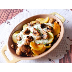 Кабачки с грибами выложить в сервировочное блюдо, полить соусом и подать к столу. Приятного аппетита! |
