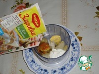Желтки выкладываем в чашу блендера. Добавляем сметану и заправку "Для рассольника" ТМ "MAGGI". |