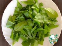 Шпинат промыть, дать стечь воде и крупно нарезать. |
