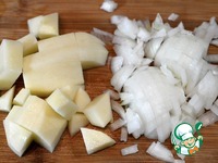 Лук обжарить с маслом до золотистого цвета, картошку добавить в кипящий бульон. Заправка для Рассольника от Mаggi уже содержит лук, но я решила добавить жареный лук, чтобы суп был более наваристый. |